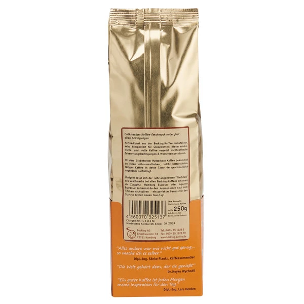 - Der Globetrotter Matterhorn Kaffee ist gemahlen und als ganze Bohne erhältlich