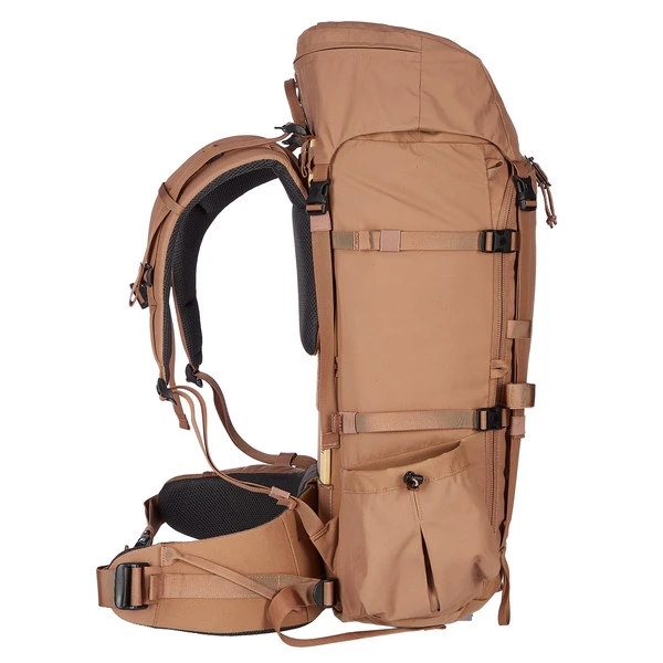 1960 wechselte Fjällräven vom Holz- zum Aluminiumgestell und markierte damit einen Wendepunkt in der Trekkingrucksack-Konstruktion. Heute geht Fjällräven den umgekehrten Weg: weg vom Alu, hin zum Holz! Die laminierten Holzleisten sind dabei mindestens genauso stabil wie das zuvor beim Kajka verwendete Aluminium. Im Direktvergleich zur Aluminiumstrebe reduziert die Strebe aus finnischer Birke die CO2-Belastung um mehr als 90%. Der Gesamt-CO2-Fußabdruck des Kajka reduziert sich damit um 10%. Und das, ohne in der Funktion oder Belastbarkeit Kompromisse einzugehen. Und ohne zusätzliches Gewicht!