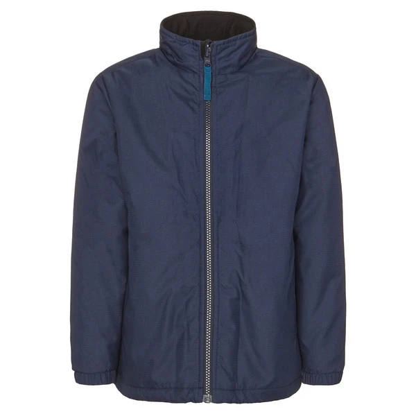 - Unterlegter Front-RV mit stark wasserabweisendem Reißverschluss (PU-beschichtet) und Kinnschutz