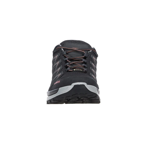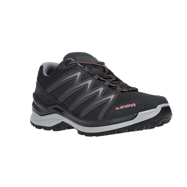 Für lange Ausdauer-Einheiten bietet der Innox Pro GTX LO besonders gute Dämpfungseigenschaften; bei schnellen Richtungswechseln im Gelände überzeugt der Hikingschuh mit einem griffigen Profil. Die verdeckt eingearbeitete Zunge liegt mit einem weichen Polster auf dem Spann auf und schmiegt sich durch den fest vernähten Elasthan-Einsatz wie eine passgenaue Socke an den Fuß.