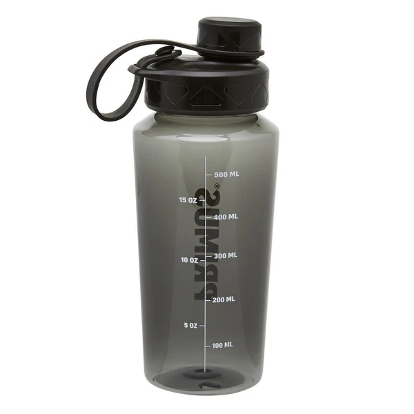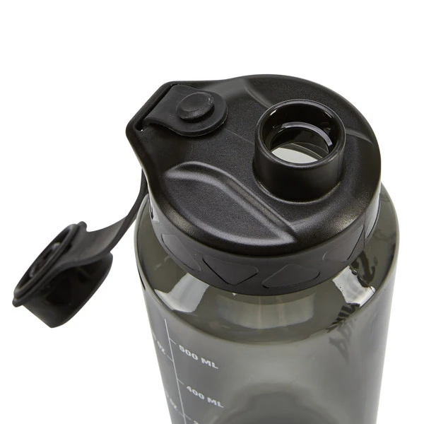 Das Tritan Material nimmt keinen Geruch oder Geschmack an und ist 100 % BPA frei. Außerdem ist es leicht, bruchsicher und spülmaschinenfest. Der Trinkverschluss wird mit einer Kappe verschraubt, die zusätzlich am Deckel gegen Verlust gesichert ist. Die Deckelsicherung dient gleichzeitig als Schlaufe, um die Trinkflasche am Rucksack zu befestigen oder zu tragen.