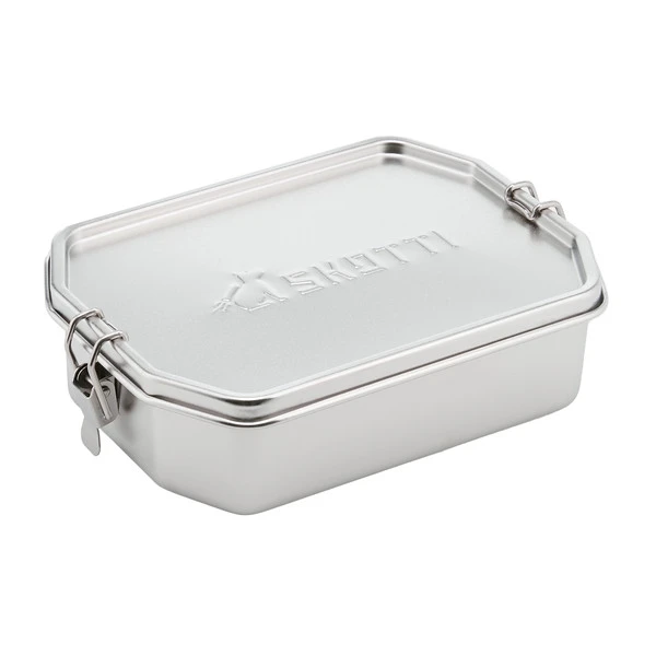 Kleine Edelstahldose mit 1 l Volumen, die sich nicht nur zum Transport von Salat oder Brot eignet, sondern auch als Topf oder Pfanne auf deinem Skottie verwendet werden kann.