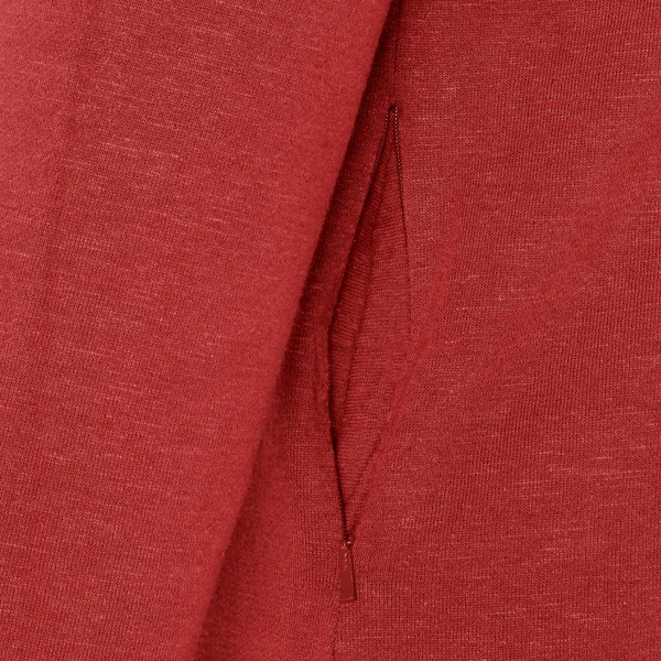 Der Hanf-Anteil macht den Pullover schön robust und formbeständig. Außerdem wirkt Hanf von Natur aus antimikrobiell, wodurch der Pullover nicht so schnell unangenehme Gerüche annimmt. Der Baumwoll-Anteil sorgt für einen weichen Griff. Der Pullover ist nicht der leichteste Vertreter seiner Art, trägt sich dank seines soften, elastischen Gewebes aber sehr angenehm. Durch die Schlingenkonstruktion auf der Innenseite wird deine Körperwärme gut gespeichert.