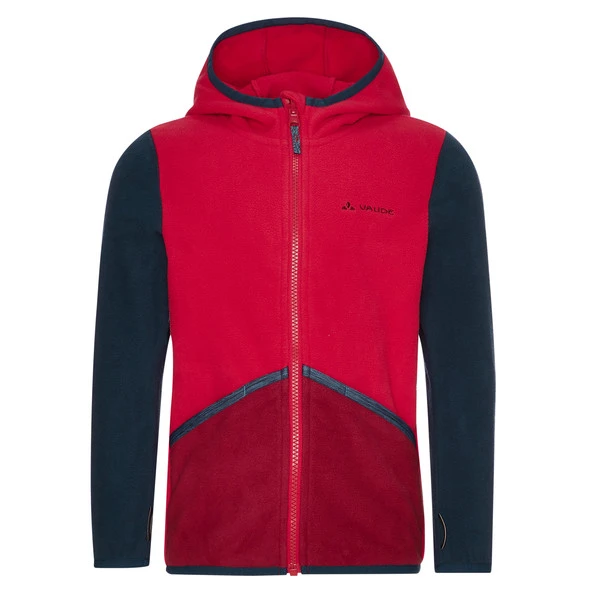 Die Fleecejacke in mitteldicker Stärke (200er) spendet angenehme Wärme, wenn es draußen kühl wird. Die Kapuze schützt Kopf und Ohren vor kaltem Wind. Bei nasskaltem Winterwetter kann sie auch einfach in eine wasserdichte Außenjacke von Vaude eingezippt werden und schwuppdiwupp entsteht eine warme, wasserdichte Doppeljacke.